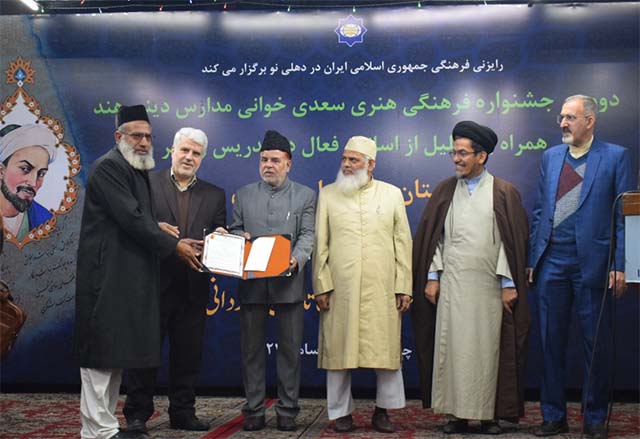به گزارش روابط عمومی بنیاد سعدی، به همت رایزنی فرهنگی ایران و نماینده بنیاد سعدی در دهلینو، با هدف تجلیل از اساتید فعال در تدریس و نشر گلستان و بوستان سعدی، تشویق مدارس دینی هند به احیاء مجدد زبان فارسی در این مدارس دومین دور از جشنواره فرهنگی و هنری سعدی خوانی ویژه مدارس دینی هند در محل نمایندگی فرهنگی کشورمان برگزار شد.