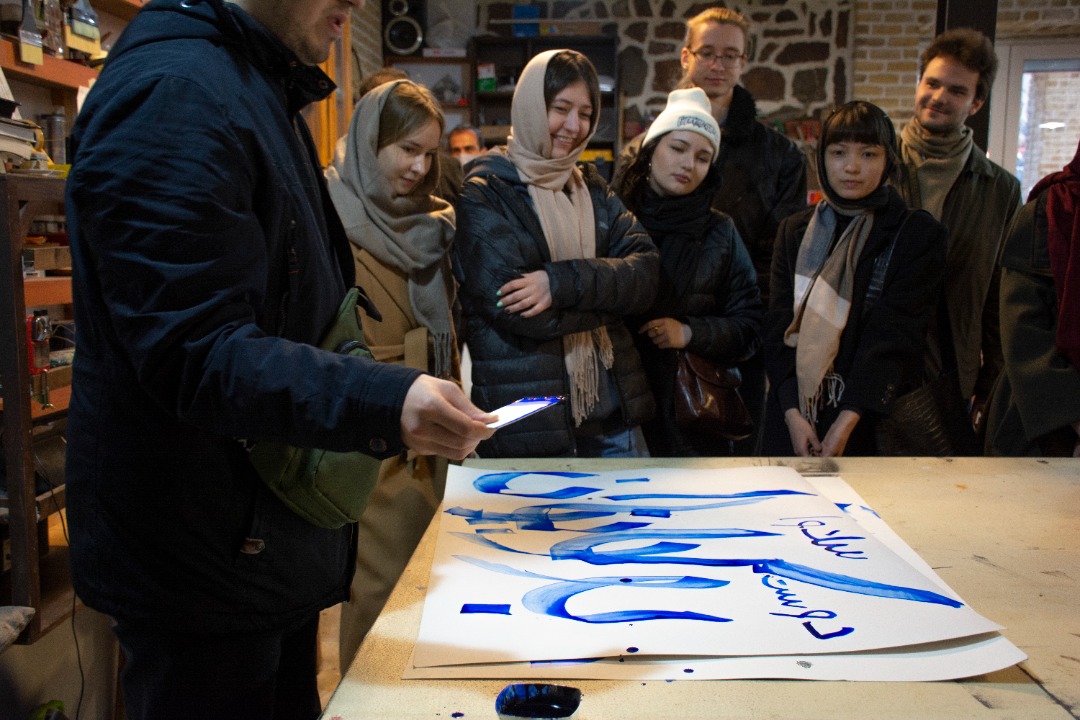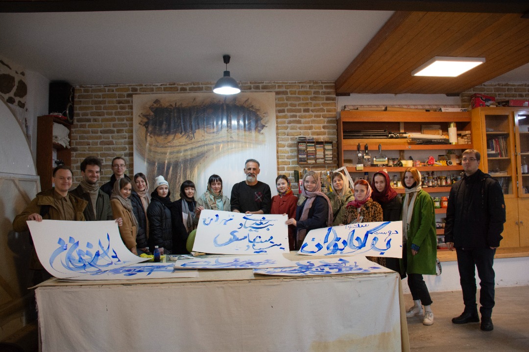 دانشجویان زبان فارسی روس شرکت کننده در مدرسه زمستانی زبان فارسی بنیاد سعدی، با حضور در کارگاه خوشنویسی فارسی با این هنراصیل آشنا شدند و با نوشتن نام خودشان، کشورشان و بنیاد سعدی، نسبت به این هنر زیبا ابراز علاقه کردند.