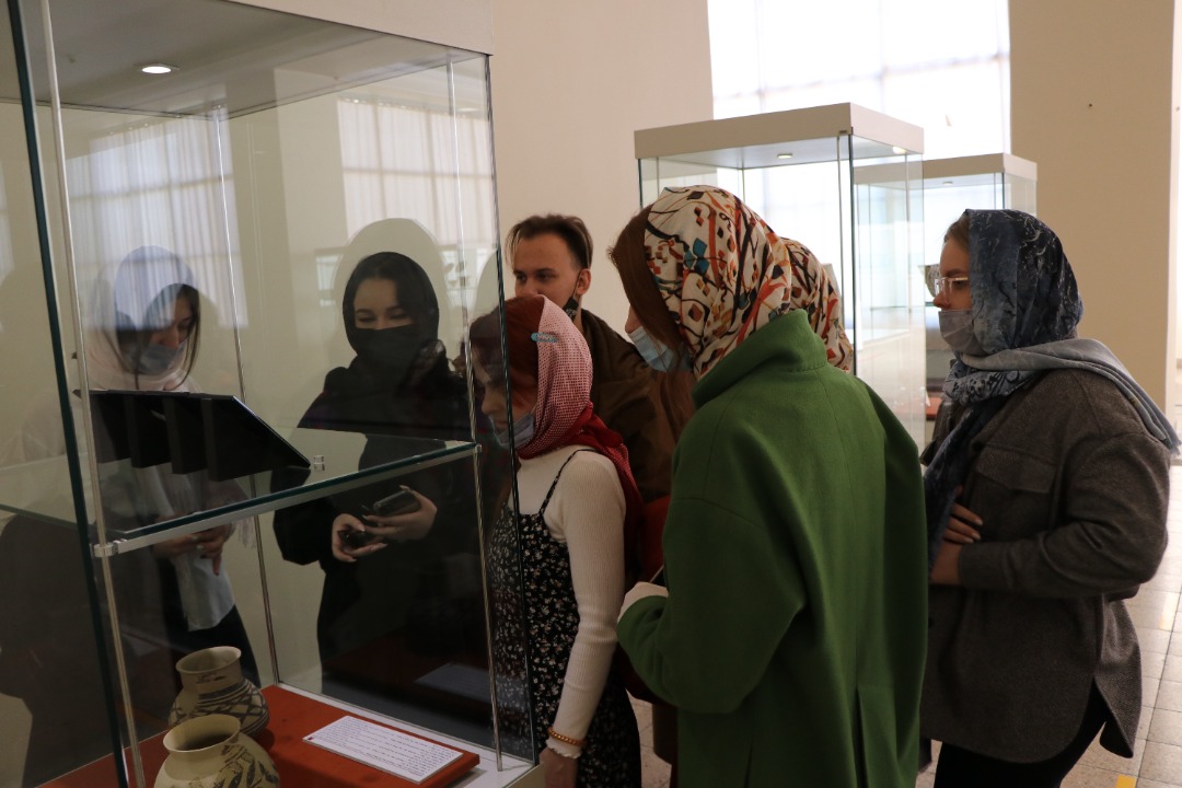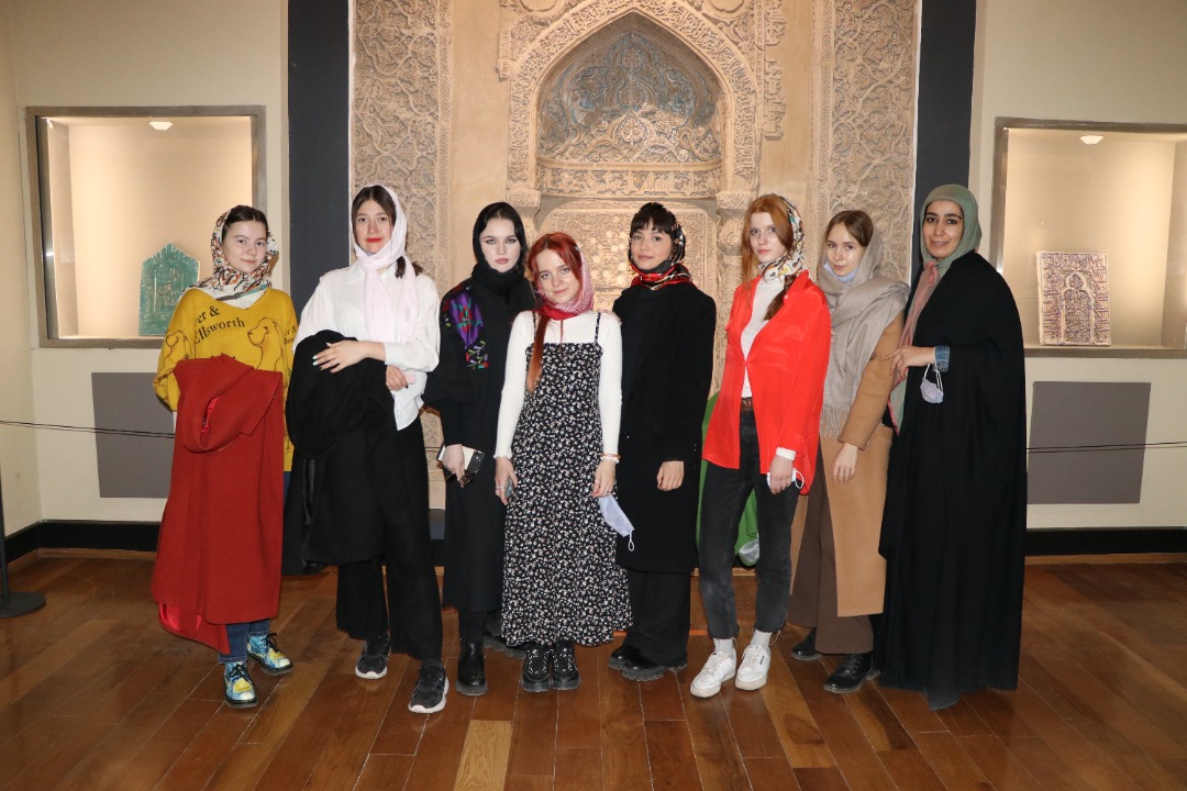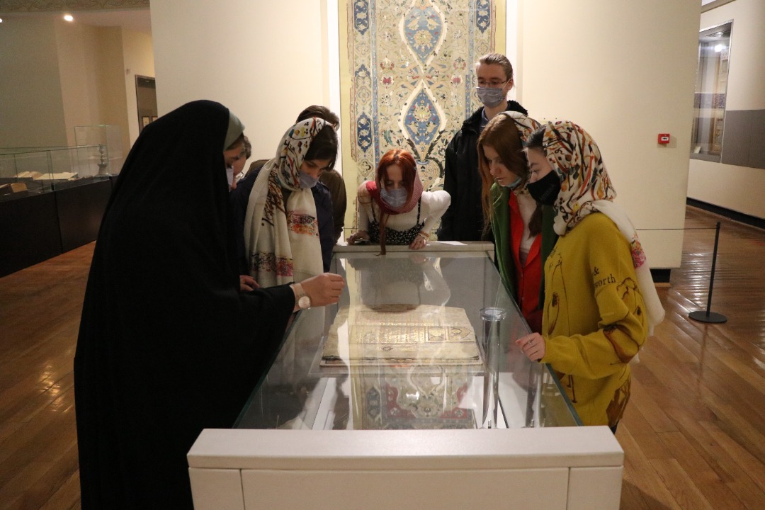 پس از آن، فارسی آموزان روس، در موزه باستانشناسی و هنر اسلامی ایران که بر اساس پلانی الهامگرفته از کاخ ساسانی بیشابور، به صورت چلیپایی هشتضلعی است، قدم زدند و تالارهای صدر اسلام، سلجوقی و ایلخانی و تالارهای قرآن، تیموری، صفویه، افشار، زند و قاجار در دو طبقه موزه را با دقت و اشتیاق از نظر گذراندند، همزمان نیز از نمایشگاه صنایع دستی فجر نیز دیدن کردند.