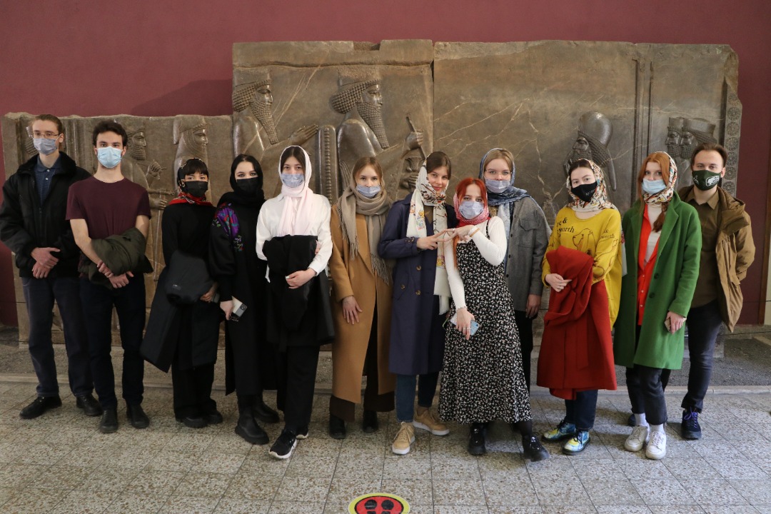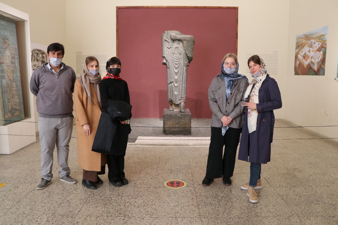 این زبان آموزان روس، در ادامه تهرانگردیهای خود، به مجموعه موزه ملی ایران رفتند. این موزه، بزرگترین، مهمترین و قدیمترین موزه کشور است. دانشجویان زیان فارسی روس در ابتدای امر از «موزه ایران باستان» شامل دو موزه «پیشازتاریخ ایران» با آثاری از دوران پارینهسنگی قدیم تا اواخر هزاره چهارم و «موزه دوران تاریخی» آثاری از اواخر هزاره چهارم تا پایان دوران ساسانی بازدید کردند و با تاریخ ایران از قبل از ابداع نگارش تا آغاز به کارگیری نگارش آشنا شدند و این سیر و سفر باستانی از ایران، برایشان بسیار خوشایند بود.