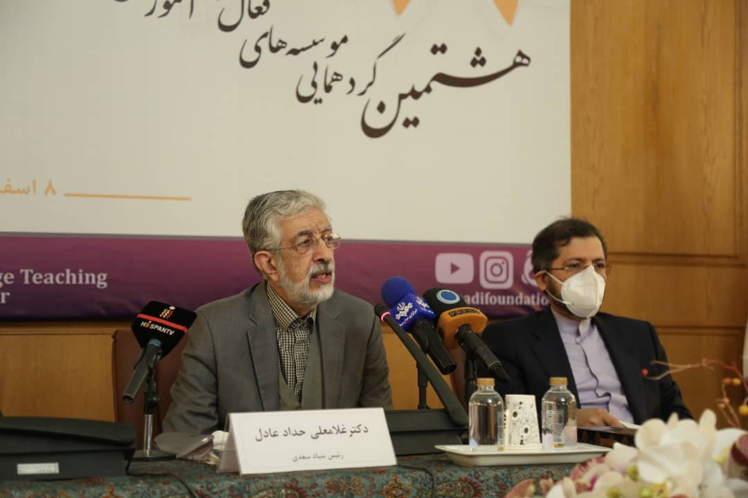 سپس غلامعلی حداد عادل با بیان اینکه وزارت امور خارجه از آغاز تاسیس بنیاد سعدی از این بنیاد پشتیبانی کرده است، گفت: زبان فارسی در کنار زبان های قومی و محلی زبان مشترک همه مردم ایران شده و مردم ایران از ۱۲۰۰ سال پیش که این زبان در ایران گسترش پیدا کرد به هر زبانی که در خانه تکلم می کردند زبان ارسی را به عنوان زبان مشترک انتخاب کردند.