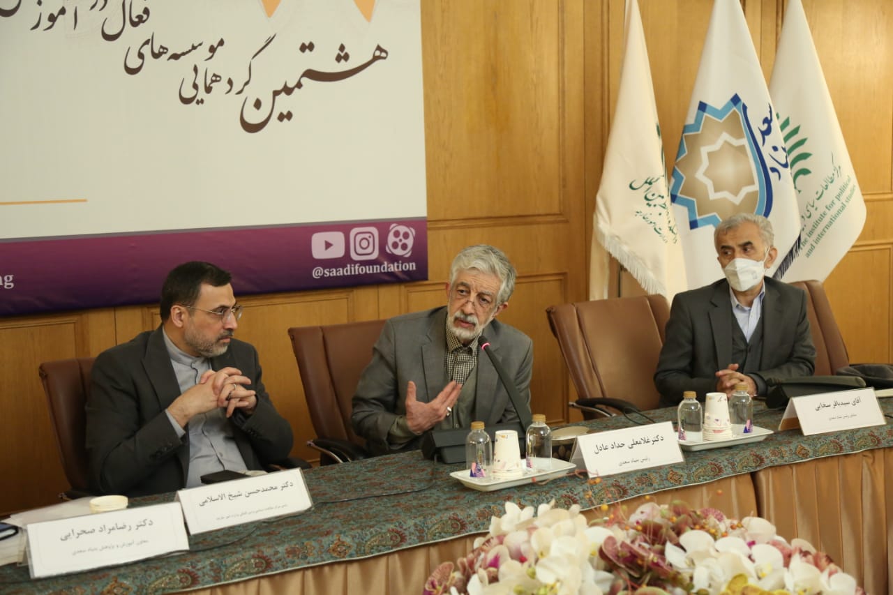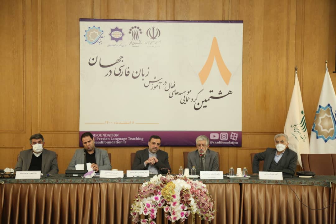 به گزارش روابط عمومی بنیاد سعدی، غلامعلی حداد عادل، رئیس بنیاد سعدی در پایان هشتمین گردهمایی سالانه مؤسسههای فعال در زمینه آموزش زبان فارسی در جهان که با همکاری بنیاد سعدی و وزارت امور خارجه شامگاه یکشنبه (هشتم اسفندماه ۱۴۰۰) در دانشکده روابط بینالملل وزارت امور خارجه برگزار شد، بیان کرد: در ۱۰ سال گذشته ما دستاوردهای خوبی داشته ایم اگر چه وقتی به مقصد نگاه می کنیم هنوز خیلی دور هستیم. وضع ما شبیه کوهنوردی است که از دشت فاصله گرفته اما با قله هم فاصله زیادی دارد ولی در این مدار دستاوردی که داریم و تجربه ای که اندوختیم ما را به ادامه راه تشویق می کند.