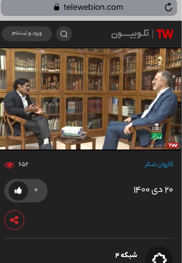 3. گفتوگو با آقای پرفسور عینالحسن رئیس دانشگاه مولانا آزاد حیدرآباد و مدیر پیشین دانشکده زبانهای خارجی دانشگاه جواهر لعل نهرو و رئیس پیشین و استاد گروه فارسی این دانشگاه، با موضوع: اظهرعلی آزاد کاکوروی؛ (متاسفانه با آنکه از تلوزین ایران پخش شد اما لینک این برنامه به دست نیامد).