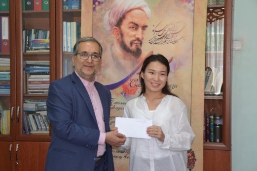رایزنی فرهنگی ایران و نماینده بنیاد سعدی در قرقیزستان به تعدادی از دانشجویان زبان فارسی دانشکده شرقشناسی و روابط بینالملل دانشگاه دولتی بیشکک، کمک هزینه تحصیلی اعطا کرد.