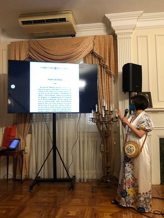 روت که ارائه خود را به زبان فارسی انجام میداد، تعدادی از این نمایشنامهها را نیز به صورت تصویری برای حاضران در جلسه نمایش داد که مورد توجه و شگفتی حاضران در جلسه شد.