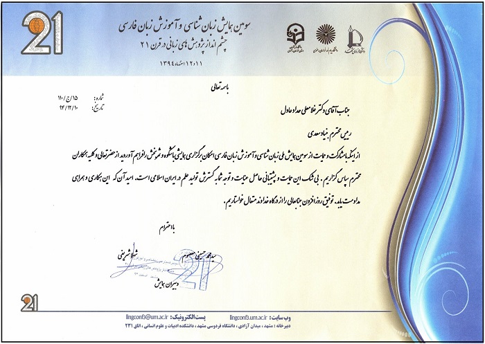 قدردانی سومین همایش ملی زبان شناسی و آموزش زبان فارسی از بنیاد سعدی