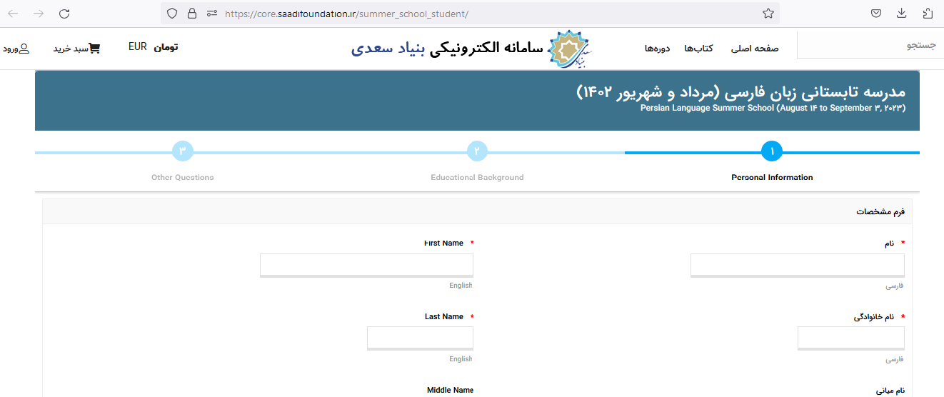 ثبت نام دورههای آموزش زبان فارسی در «مدرسه تابستانی زبان فارسی بنیاد سعدی» از امروز سوم تیرماه ۱۴۰۲ برابر با ۲۰۲۳/۶/۲۴ میلادی آغاز شده است و تا ۳۱ تیرماه برابر با ۲۰۲۳/۷/۲۲ ادامه خواهد داشت.