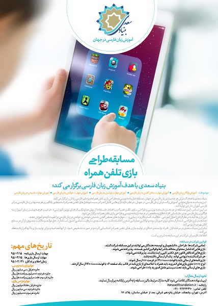 بنیاد سعدی با هدف گسترش هر چه بیشتر زبان فارسی در جهان، مسابقه «بازینامه نویسی» و «طراحی بازی تلفن همراه» ویژه غیر فارسی زبانان را برگزار می کند.