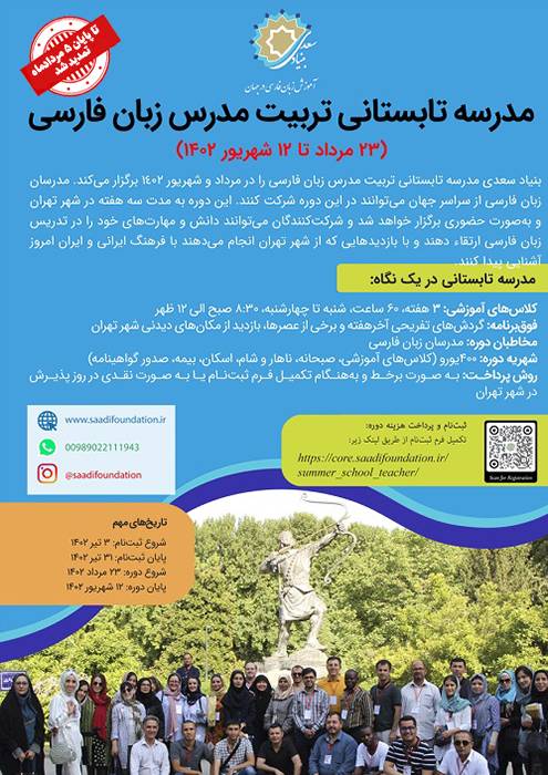 علاقهمندان برای ثبت نام به آدرس https://core.saadifoundation.ir/summer_school_teacher/ مراجعه کنند.