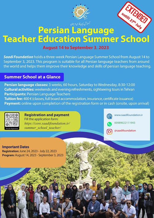 تمدید مهلت ثبت نام «مدرسه تابستانی تربیت مدرس زبان فارسی بنیاد سعدی»