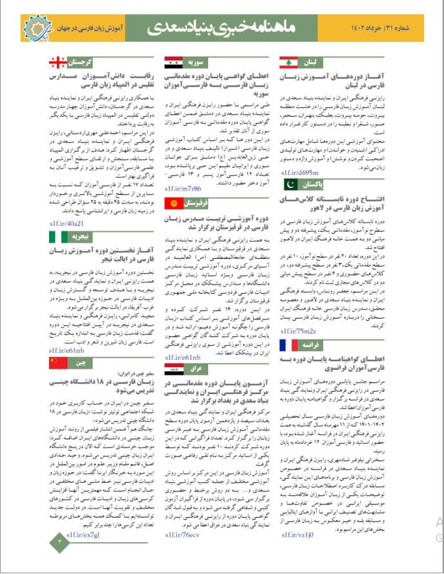 سی و یکمین «ماهنامه خبری آموزش زبان فارسی به غیر فارسی زبانان»