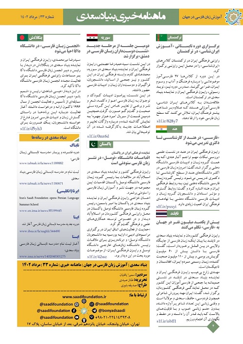 به گزارش روابط عمومی بنیاد سعدی، نسخه الکترونیک «ماهنامه خبری آموزش زبان فارسی به غیر فارسی زبانان» این امکان را برای علاقهمندان به رویدادهای زبان فارسی در سراسر جهان فراهم آورده که با کلیک بر روی پیوند کوتاه در پایان هر مطلب، خبر اصلی را به صورت کامل در وبگاه بنیاد سعدی مشاهده کرده و بخوانند.