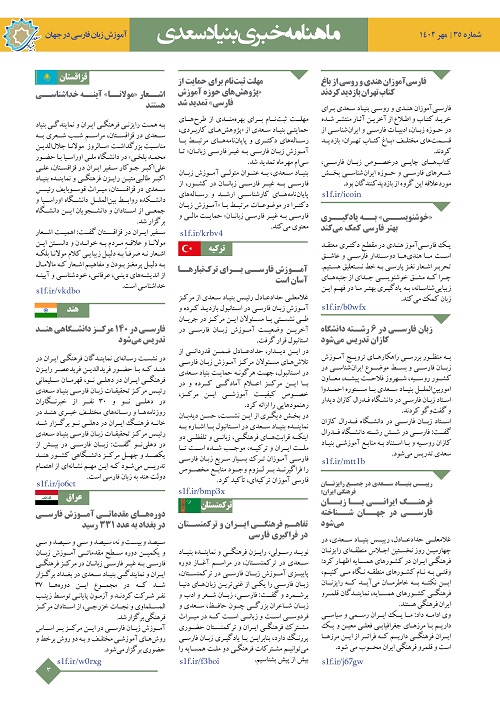 به گزارش روابط عمومی بنیاد سعدی، نسخه الکترونیک «ماهنامه خبری آموزش زبان فارسی به غیر فارسی زبانان» این امکان را برای علاقهمندان به رویدادهای زبان فارسی در سراسر جهان فراهم آورده که با کلیک بر روی پیوند کوتاه در پایان هر مطلب، خبر اصلی را به صورت کامل در وبگاه بنیاد سعدی مشاهده کرده و بخوانند.