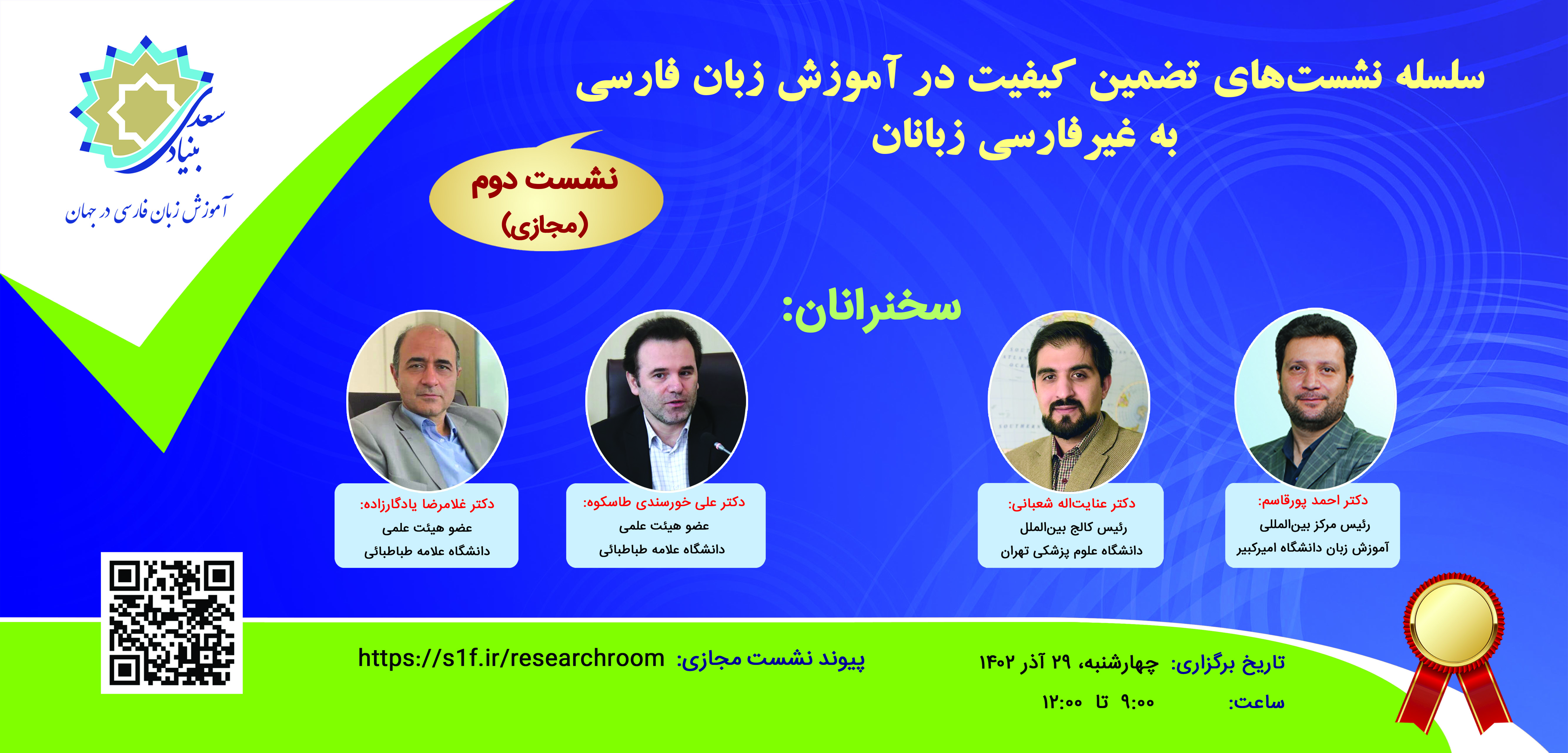 به همت بنیاد سعدی، دومین نشست از سلسله نشستهای مجازی «تضمین کیفیت در آموزش زبان فارسی به غیر فارسی زبانان» با حضور اساتید مطرح دانشگاه و صاحبنظران این حوزه برگزار میشود.
