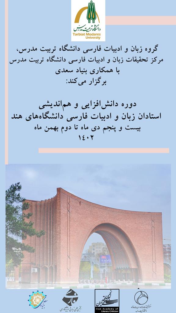بنا به این ضرورت و همچنین درخواستی که از سوی استادان هندی و پیگیری مرکز تحقیقات فارسی دهلی نو بنیاد سعدی، مطرح شد، در ادامه دوره دانش افزایی ویژه استادان زبان و ادبیات فارسی دانشگاههای هند، «دوره دانشافزایی ادبیات معاصر فارسی» از ۲۵ دی ماه تا ۲ بهمن ماه ۱۴۰۲ توسط گروه زبان و ادبیات فارسی دانشگاه تربیت مدرس برگزار خواهد شد.