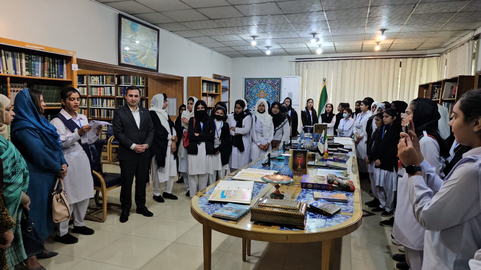 در ادامه، دانشجویان از نمایشگاه صنایع دستی و هنری ایران در خانه فرهنگ بازدید کردند. در این نمایشگاه، آثاری از هنرمندان ایرانی در رشتههای مختلف از جمله نقاشی، خوشنویسی، و سفالگری به نمایش گذاشته شده بود.