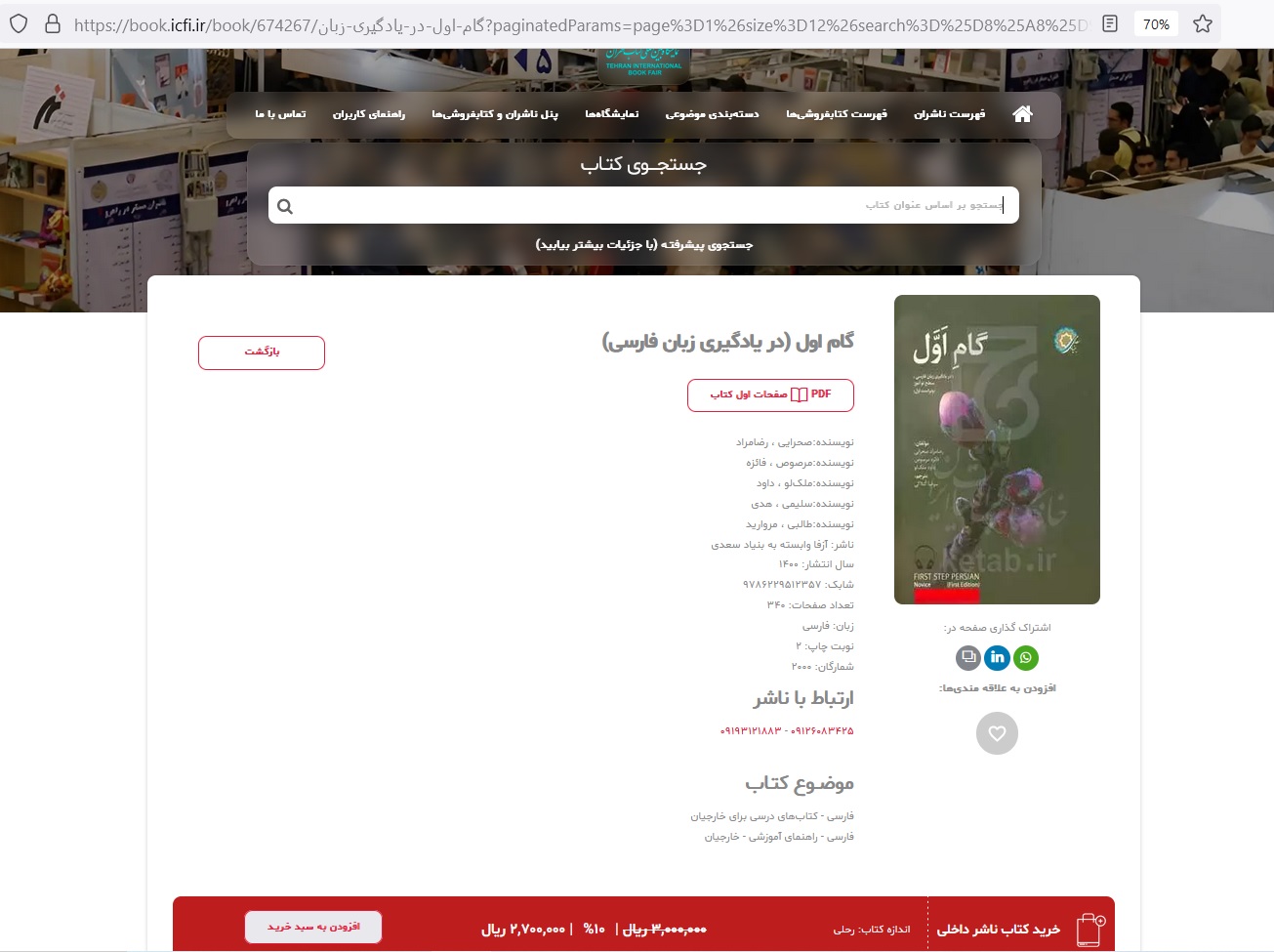 لذا علاقهمندان به تهیه کتابهای بنیاد سعدی در حوزه آموزش فارسی به خارجیان یا روشهای تدریس زبان فارسی به غیر فارسی زبانان با مراجعه به وبگاه فروش مجازی سیوپنجمین نمایشگاه کتاب تهران می توانند با جستجوی نام مورد نظر به کتابها دسترسی داشته باشند و کتاب فیزیکی خریداری و برایشان به صورت رایگان از طریق شرکت پست به سراسر کشور ارسال شود.