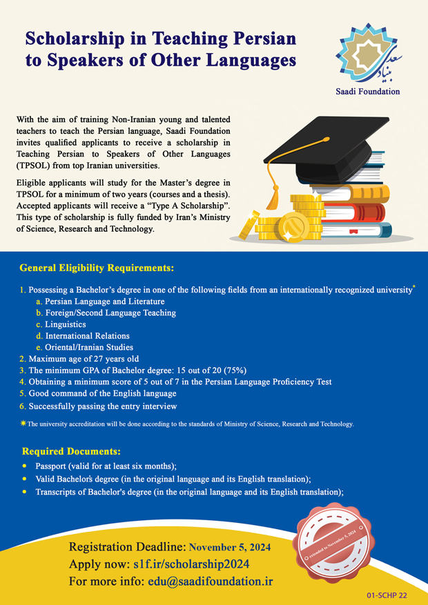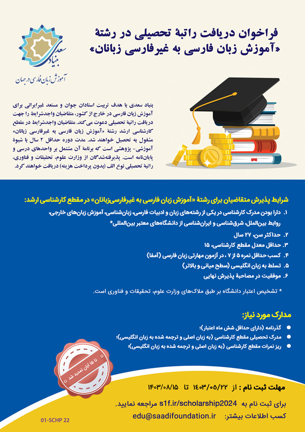 انتشار فراخوان راتبه تحصیلی در رشته آموزش زبان فارسی به غیر فارسی زبانان