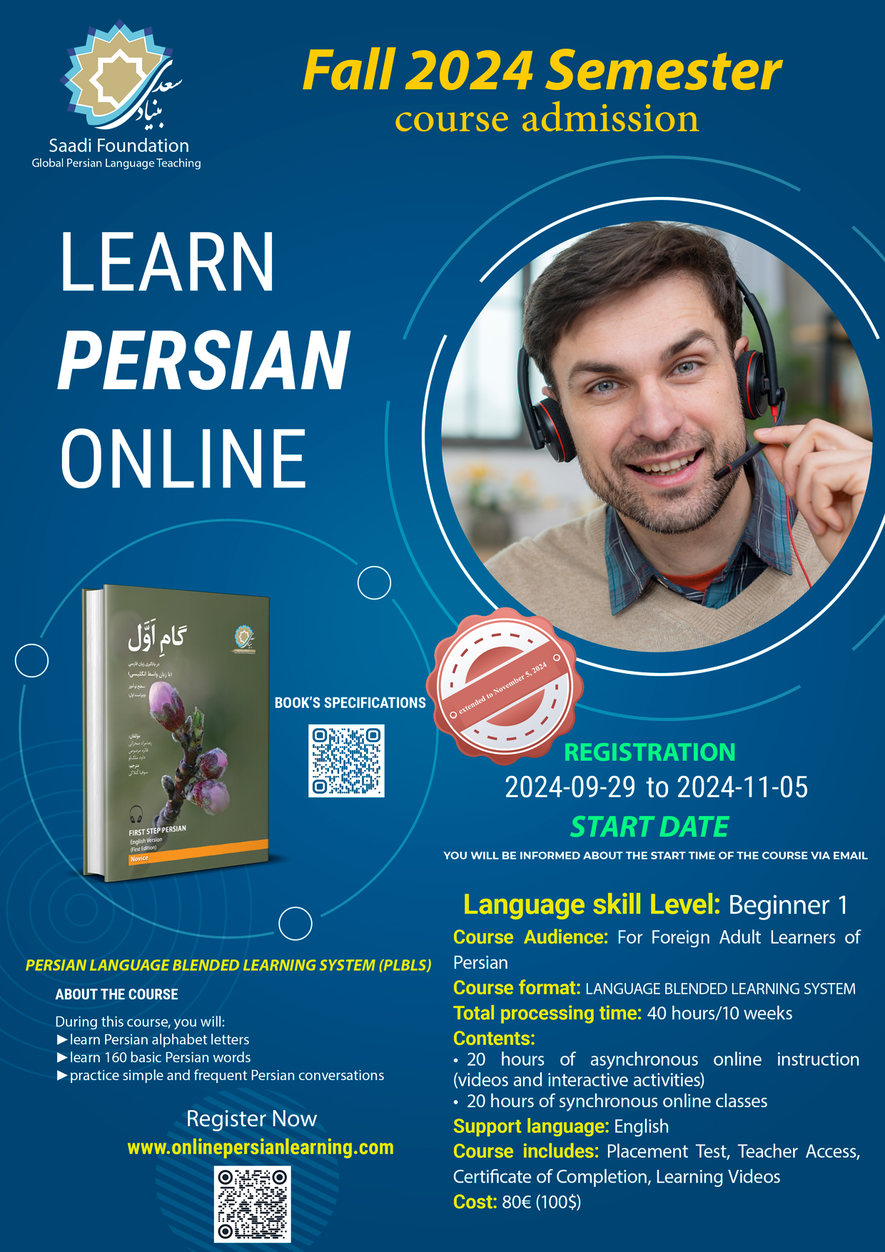 زمان ثبت نام برای حضور در این دوره از هشتم تا پانزدهم آبان ماه و از طریق وبگاه www.onlinepersianlearning.com خواهد بود.