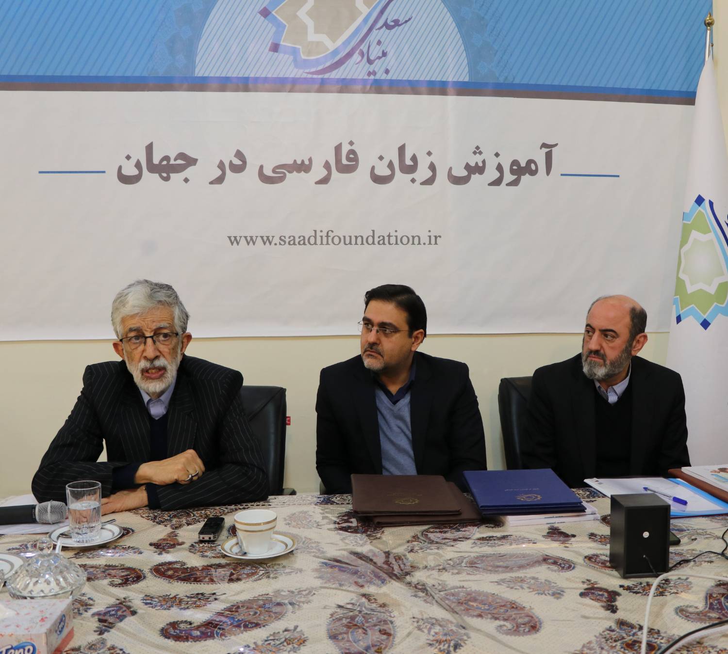 به گزارش روابط عمومی بنیاد سعدی، در این مراسم دکتر غلامعلی حداد عادل؛ رییس بنیاد سعدی با اشاره به هدف راهاندازی این بنیاد جهت تمرکز و تخصصی کار کردن آموزش زبان فارسی در خارج از کشور گفت: این بنیاد بهطور پیوسته به اهداف خود نزدیک میشود و این پیشرفتها در شرایط جدید جهانی و تحولات فضای مجازی بهوضوح قابل مشاهده است که اگر آموزش زبان فارسی در ساختار قبلی خود باقی میماند، ممکن بود حوزۀ آموزش زبان و ادبیات فارسی از تحولات روز دنیا عقب بماند.
