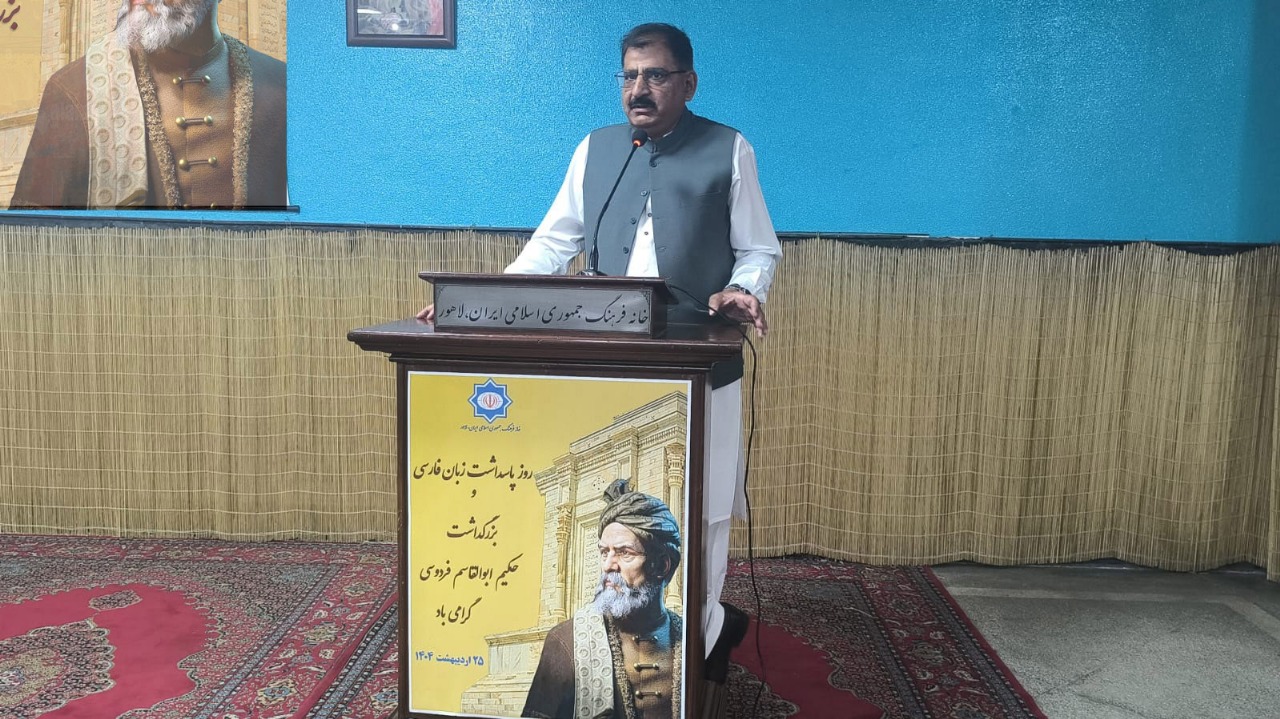 به گزارش روابط عمومی بنیاد سعدی، در این مراسم اصغر مسعودی، رئیس خانه فرهنگ جمهوری اسلامی ایران در لاهور و نماینده بنیاد سعدی، با اشاره به نقش فردوسی در پاسداری از زبان فارسی، اظهار کرد: فردوسی تنها یک شاعر نیست، بلکه حکیمی بزرگ و فیلسوفی ژرفاندیش است که با خلق شاهنامه، زبان فارسی را از زوال نجات داد و به فرهنگ و هویت ایرانی حیاتی دوباره بخشید.