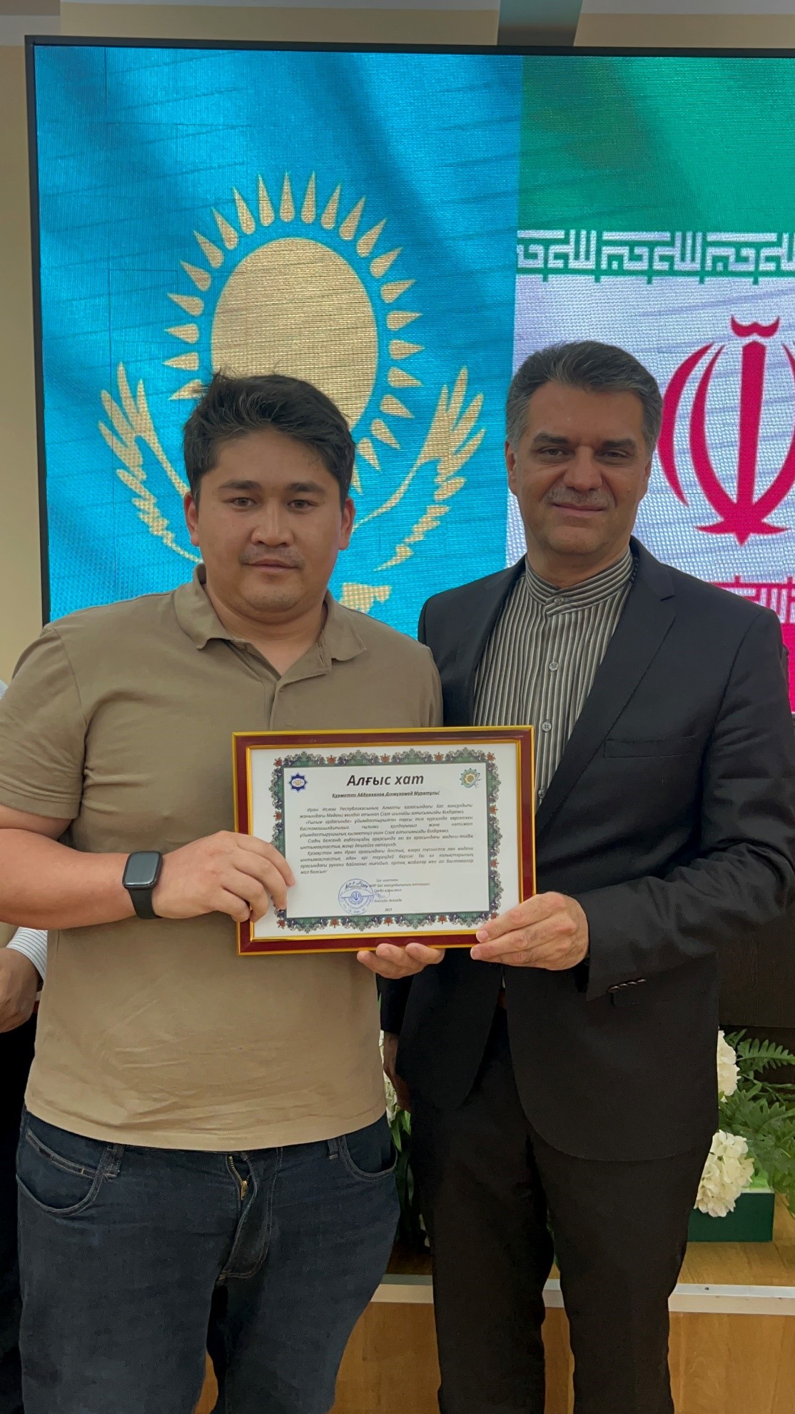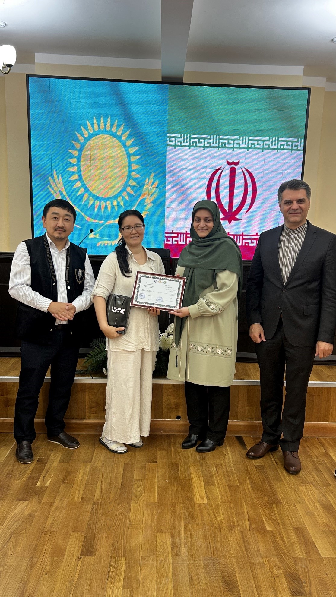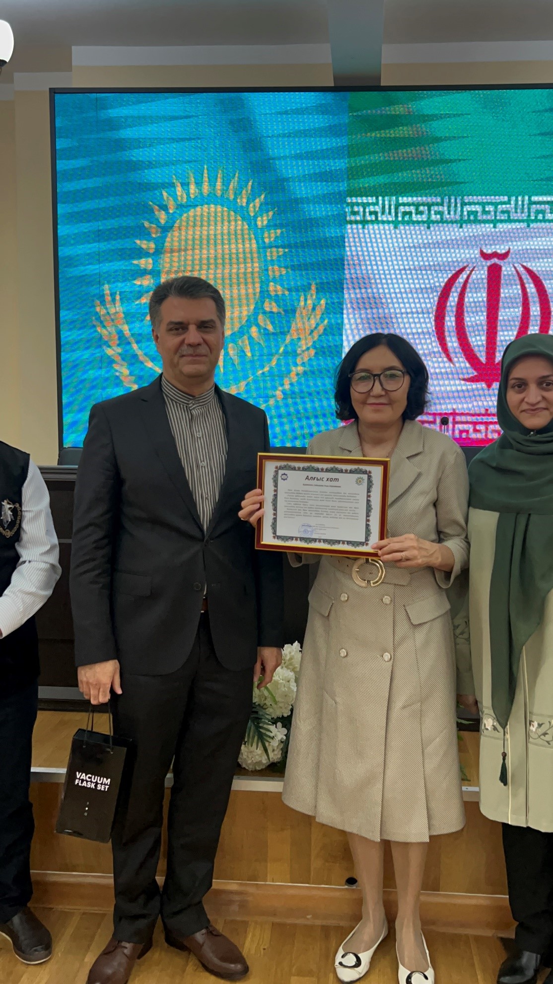 در این مراسم، اولار موقاجانف، رئیس فرهنگستان علوم قزاقستان، با ابراز رضایت از برگزاری دوره، آن را گامی مؤثر در راستای توسعه همکاریهای علمی و فرهنگی میان دو کشور عنوان کرد. وی همچنین با اشاره به سفر اخیر خود به ایران و بازدید از مراکز مرمت نسخ خطی، بر اهمیت تبادل تجربه و توسعه تعاملات علمی تأکید کرد.