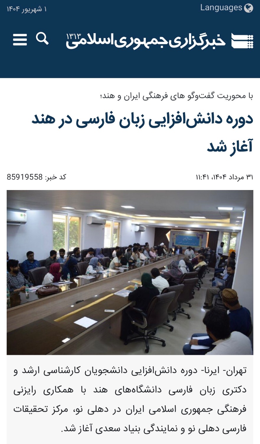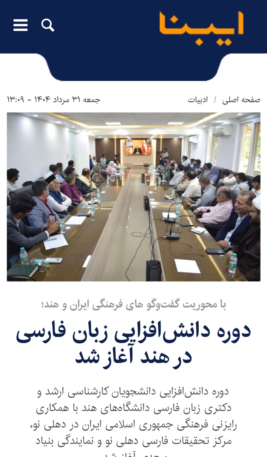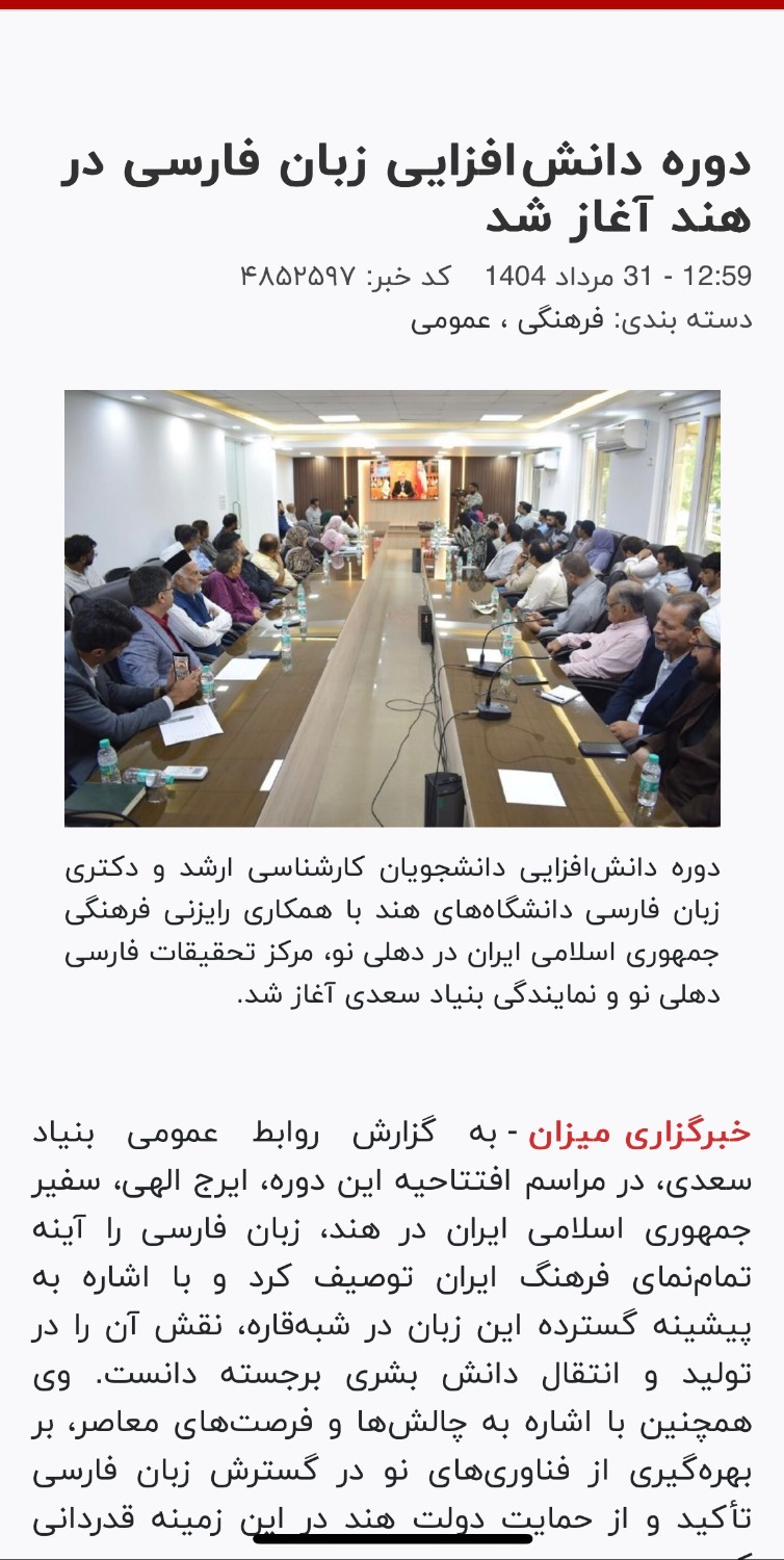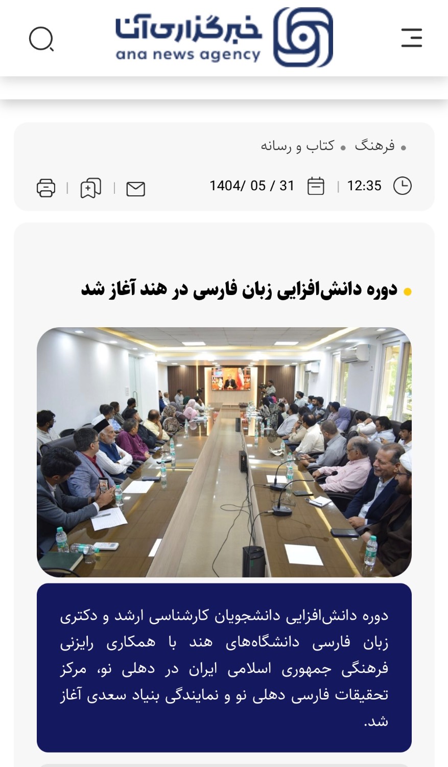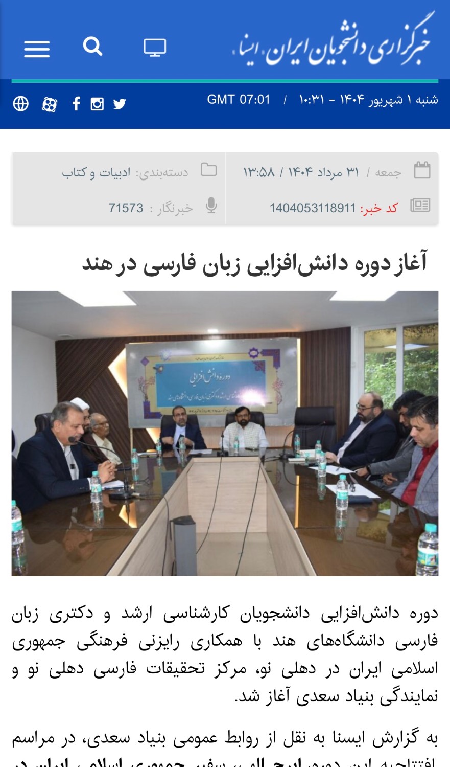 بازتاب رسانهای آغاز دوره دانشافزایی زبان فارسی دانشجویان کارشناسی ارشد و دکتری زبان فارسی دانشگاههای هند