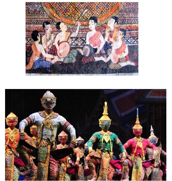 در خون (Khon) و لیکای (Likay)، برخی تمها و نمادهای ایرانی مانند پادشاهان عادل، مشاوران خردمند، و جنگجویان اسطورهای حضوردارند و هرچند با پوشش و سبک تایلندی. این تأثیرات در قالب نمایشهای خیابانی، موسیقی و نمایشهای آیینی متجلی شده و باعث غنای محتوایی و تنوع هنری در فرهنگ تایلند شده و این روند بومیسازی و تلفیق فرهنگها، نمونهای از تعامل زنده و پویا میان دو فرهنگ ایرانی و تایلندی است.