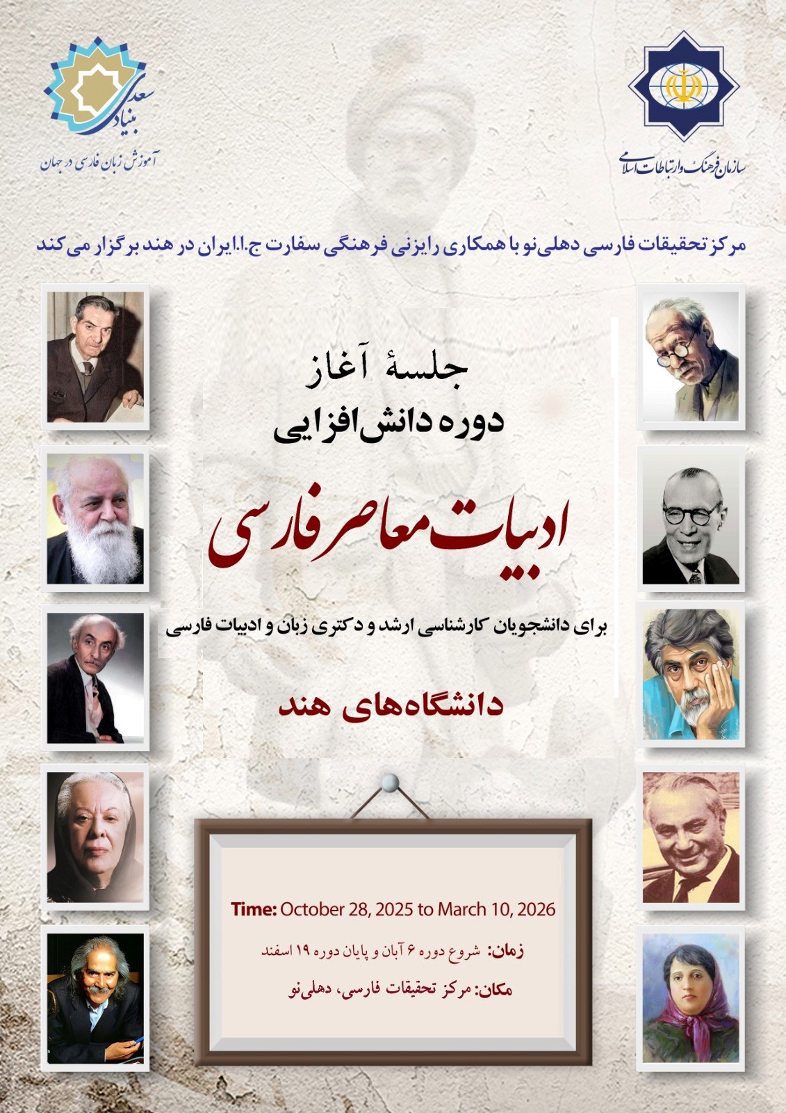 گفتنی است، این دوره به صورت هفتگی و با حضور چهارده استاد ایرانی و یک استاد هندی در محل مرکز تحقیقات فارسی دهلی نو برگزار میشود و دانشجویان دانشگاههای دهلی به صورت حضوری و سایر شرکتکنندگان از شهرهای دیگر هند بهصورت برخط در آن حضور دارند.