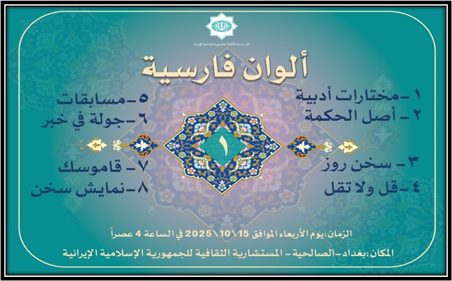 به گزارش روابط عمومی بنیاد سعدی، سلسله نشستهای «ألوان فارسیه» با هدف ترویج و آموزش همهجانبه زبان و ادبیات فارسی در میان فارسیآموزان و مخاطبان عراقی طراحی شده است. در این برنامه ها، موضوعاتی با محورهای هشتگانه از جمله بررسی شاهکارهای نظم و نثر فارسی، تحلیل معنا و مفهوم ضربالمثلها و حکمتهای کهن فارسی، گفتوگو پیرامون موضوعات فرهنگی و ادبی روز، آموزش اصول درستنویسی و کاربرد صحیح واژگان فارسی، مرور تازهترین رویدادهای ادبی، معرفی واژگان و اصطلاحات پرکاربرد، اجرای نمایش زنده برای تقویت مهارت گفتاری و برگزاری مسابقات تعاملی زبانی ارائه میشود.