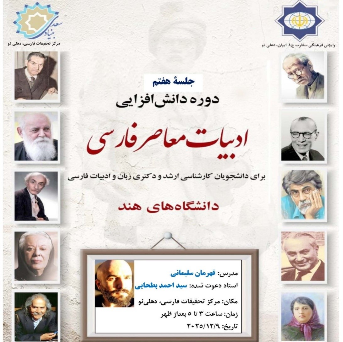 نخستین دوره دانشافزایی ادبیات معاصر فارسی با هدف تقویت مهارتهای زبانی و ادبی دانشجویان هندی، هر هفته روزهای سهشنبه در مرکز تحقیقات فارسی و نمایندگی بنیاد سعدی در دهلینو برگزار میشود و در آن 14 استاد ایرانی و یک استاد هندی به ارائه درسگفتارهای تخصصی میپردازند.
