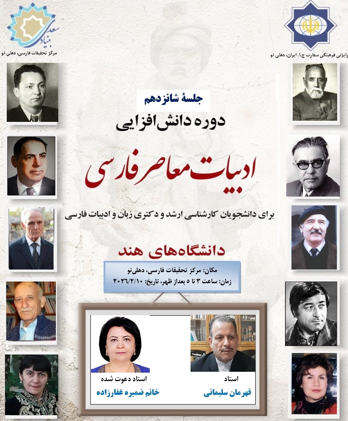 نخستین دوره دانشافزایی «ادبیات معاصر فارسی» با هدف تقویت مهارتهای زبانی و ادبی دانشجویان هندی، هر هفته روزهای سهشنبه در مرکز تحقیقات فارسی و نمایندگی بنیاد سعدی در دهلینو برگزار میشود و در آن ۱۴ استاد ایرانی و یک استاد هندی به ارائه درسگفتارهای تخصصی میپردازند.
