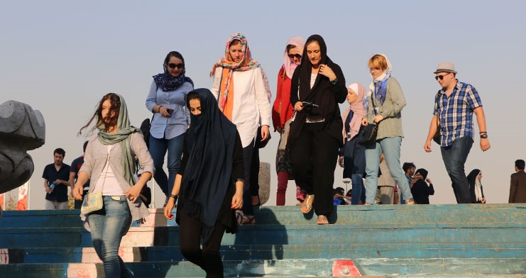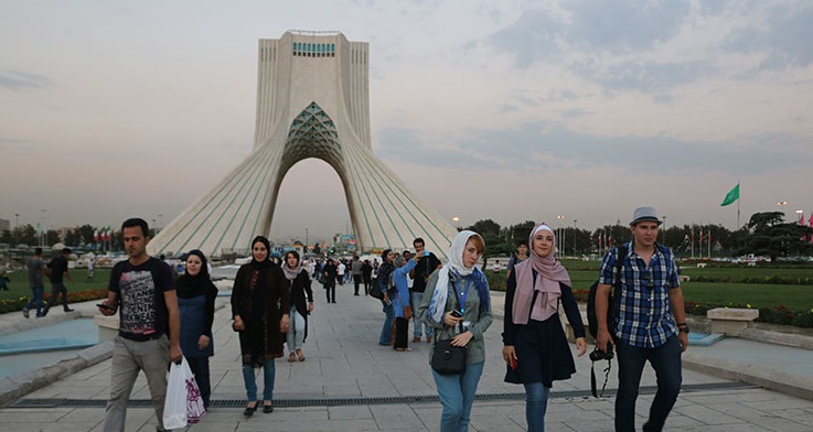 به همین دلیل، گروه اول دانشجویان خارجی بعد از رفع کنجکاویها و ساختن خاطرهها باید جایشان را به همسفران بدهند. این بالا زیباست. لااقل برای ما که تعریفش را شنیدهایم و همیشه آن پایین خود را زیر پای آزادی احساس میکردیم، حضوری جسورانه است. اینجا امنیت کمتری نسبت به برج میلاد دارد. نردههای محافظ کوتاهتر و میلهها غبارآلودهترند! چند تن از جوانها را که برای عکس خویشانداز از نوک برج بالا رفته بودند با تذکر پایین آورده شدند که «در تهران، آن هم در آزادی، نباید بلایی سرتان بیاید!»