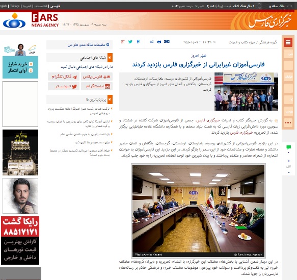 فارسیآموزانی از کشورهای روسیه، بلغارستان، ارمنستان، گرجستان، بنگلاش و آلمان ظهر امروز از خبرگزاری فارس بازدید کردند.
