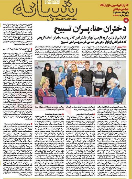 دختران حنا، پسران تسبیح ۲۶ آبان ۱۳۹۵ | ۲۰:۴۶ کد : ۸۰۶ رویدادهای پیش رو ارسال به دیگران نام شما ایمیل شما ایمیل دریافتکننده ارسال انصراف تعداد بازدید:۷۲۵ روزنامه «هفت صبح» در تاریخ 26 آبان 1395، گزارشی از یک روز همراهی با گروه دانش آموزان مدرسه زبان شناسی آستاراخان روسیه که در دوره دانش افزایی زبان فارسی بنیاد سعدی در تهران حاضر بودند، منتشر کرده است.
